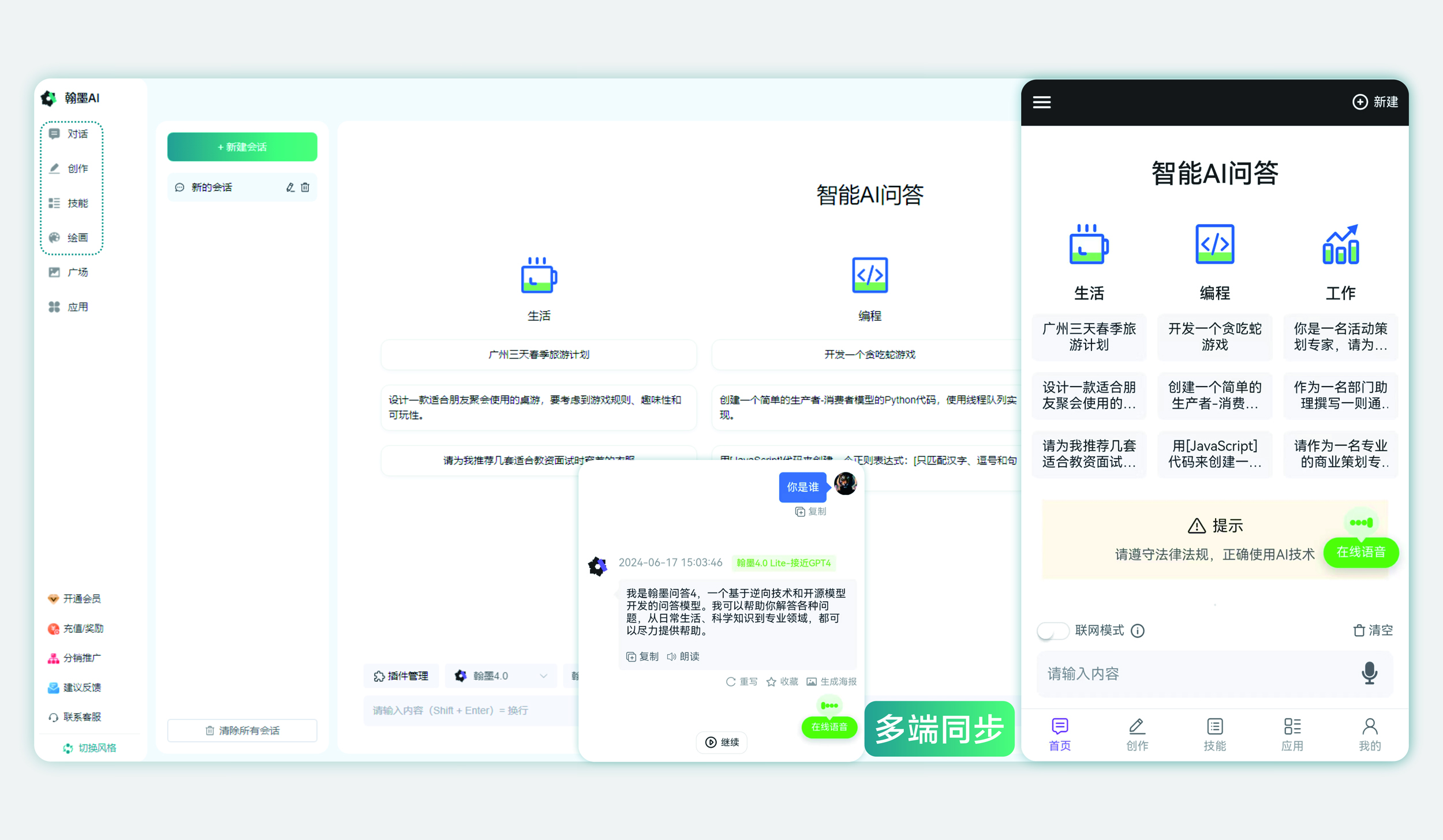 支持多種大模型問答,圖片識別,繪圖,文檔問答,智能寫文案等